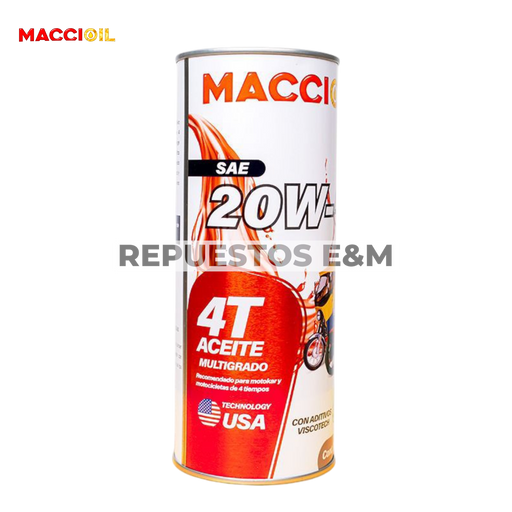 Macci Oil SAE 25W-50 para motokars incluye el exclusivo aditivo VISCOTECH, diseñado especificamente para motores de 4 tiempos.Este aditivo forma un...